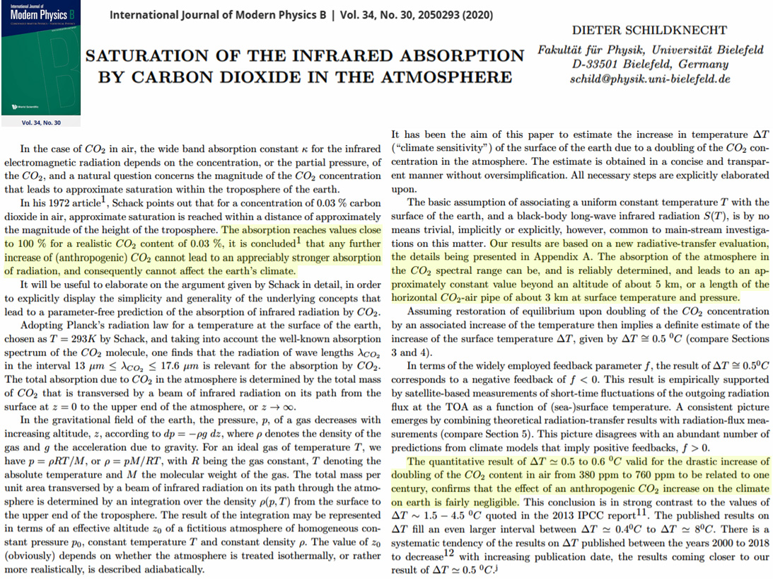 NUOVO STUDIO: PROF. DI FISICA CONCLUDE CHE L’EFFETTO CLIMATICO DELLA CO2 È “ABBASTANZA TRASCURABILE” – AGGIUNGE SOLO 0,5 ° C PER UN RADDOPPIO A 760 PPM