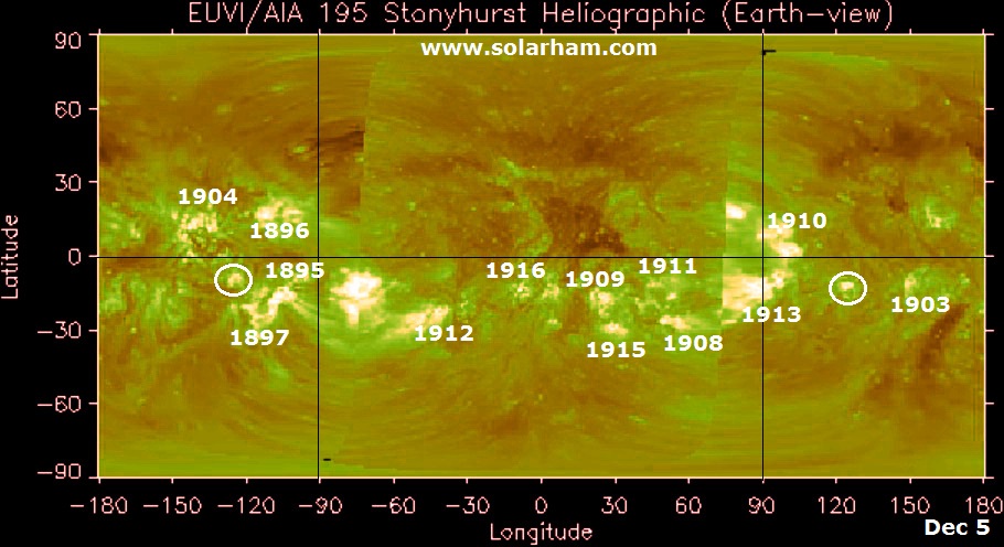 Una luminosa eruzione di massa coronale, è stata vista dalla sonda STEREO A, la regione responsabile dovrebbe essere la 1895, che attualmente è situata nella parte non visibile ad est, ed entro 48 ore dovrebbe ruotare nella parte visibile. Ovviamente nessuna nube di plasma è diretta verso la Terra, vista la posizione.