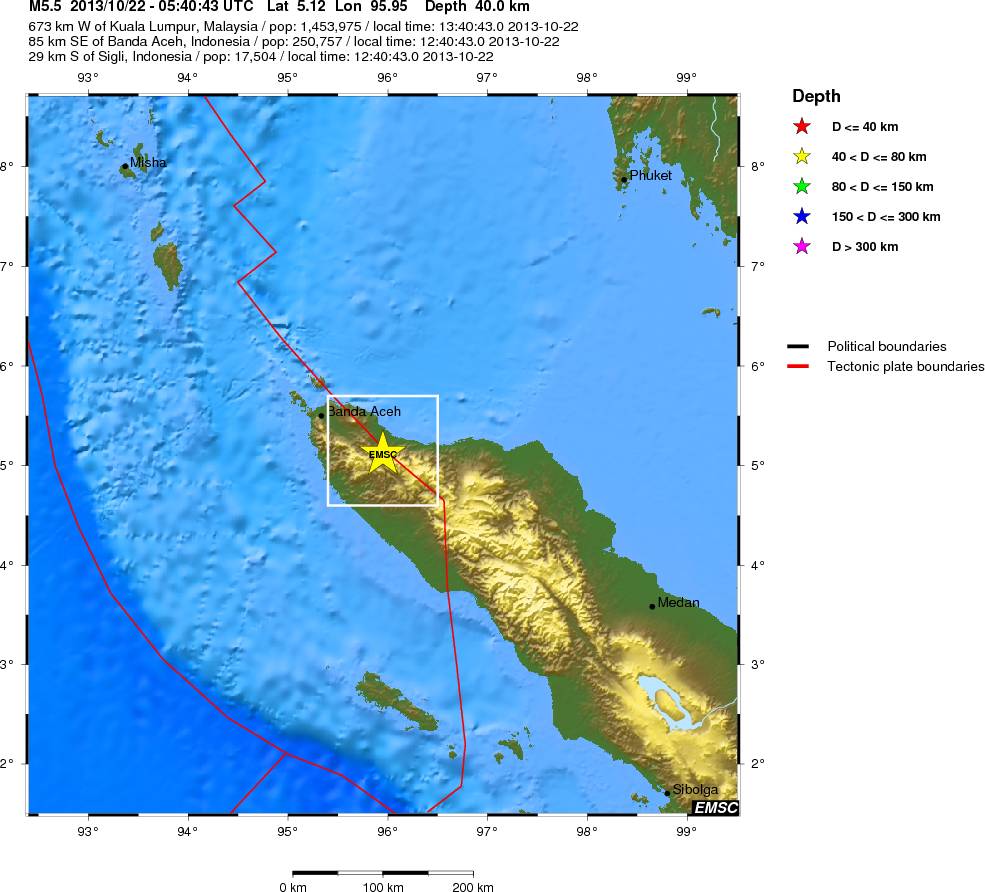 2013-10-22 05:40:43.0 5.12 N 95.95 E 40 5.5 NORTHERN SUMATRA, INDONESIA