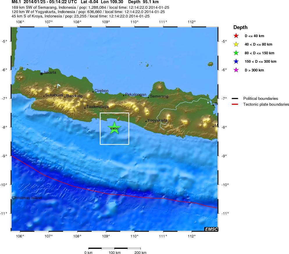 2014-01-25 05:14:22.0 8.04 S 109.30 E 95 6.1 JAVA, INDONESIA