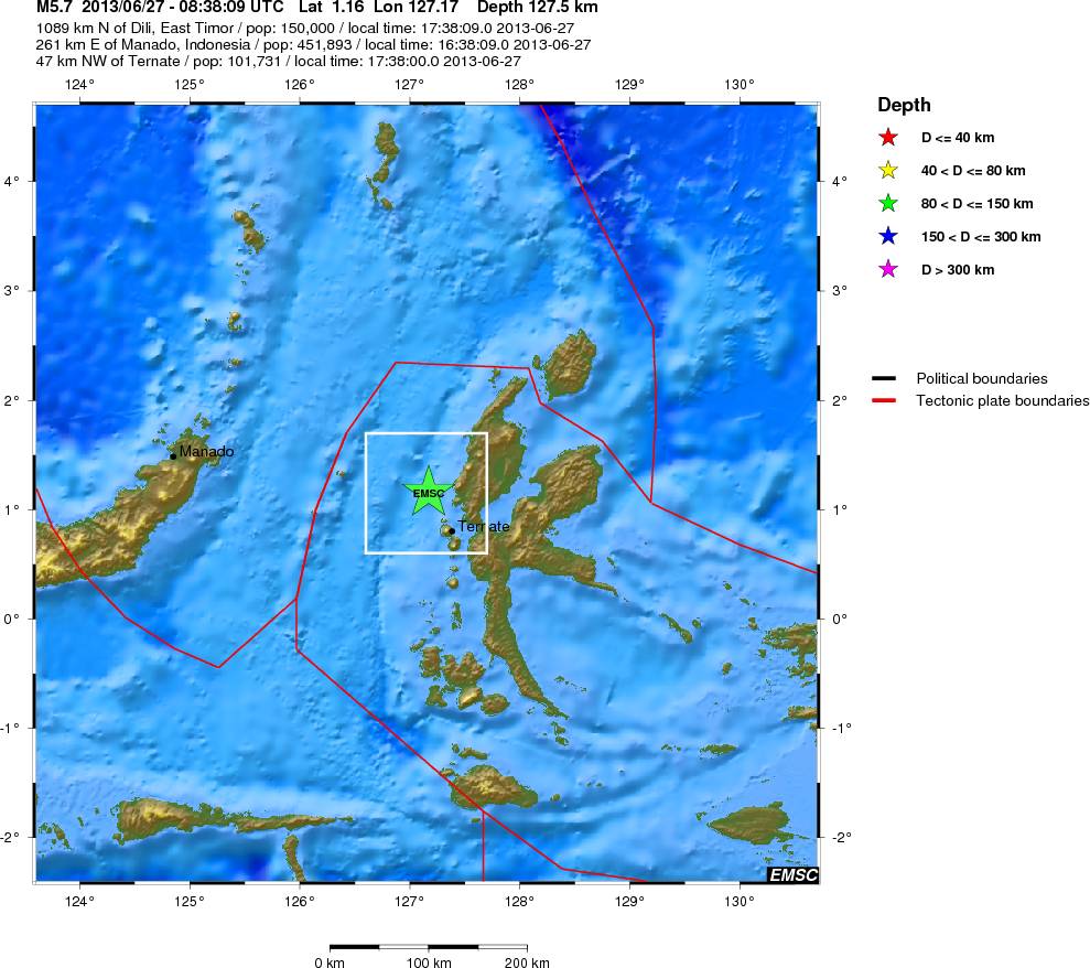 2013-06-27 08:38:09.01.16 N 127.17 E 128 5.7 HALMAHERA, INDONESIA