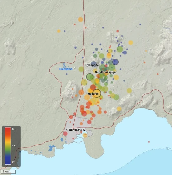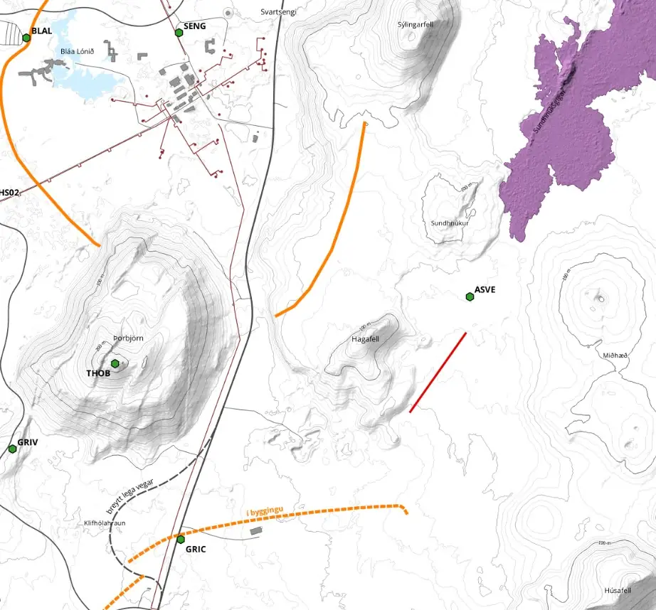 Sia le misurazioni GPS in tempo reale che le letture della pressione dei pozzi trivellati (da HS Orka) hanno mostrato importanti cambiamenti dall’inizio dell’attività sismica. Inoltre, la sismicità si è spostata verso la città di Grindavik.