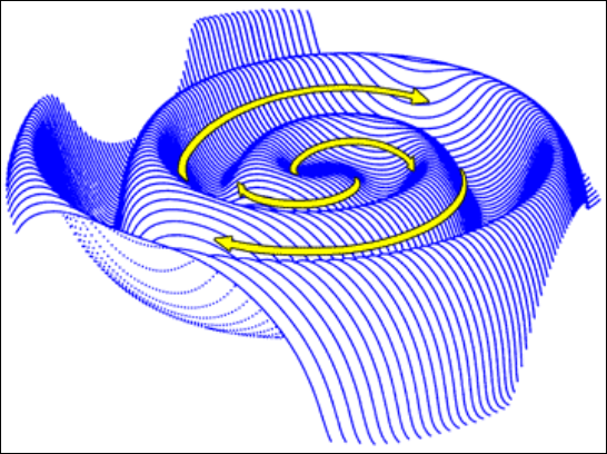 Spirale di Parker: Modello tridimensionale che illustra l’andamento nello spazio interplanetario dell’IMF o della HCS. Spesso descritta anche con il modello ballerina-skirt.