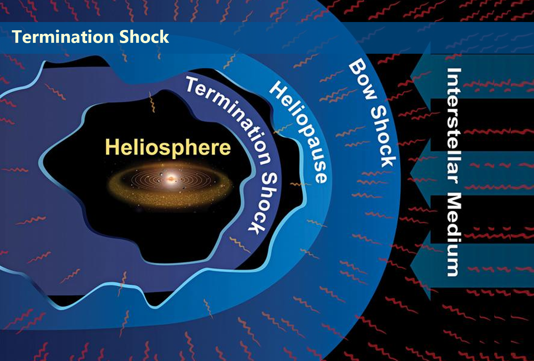 Termination Shock: Zona dell’eliosfera dove la velocità del vento solare scende al di sotto di quella del suono relativamente al mezzo in cui si muove.