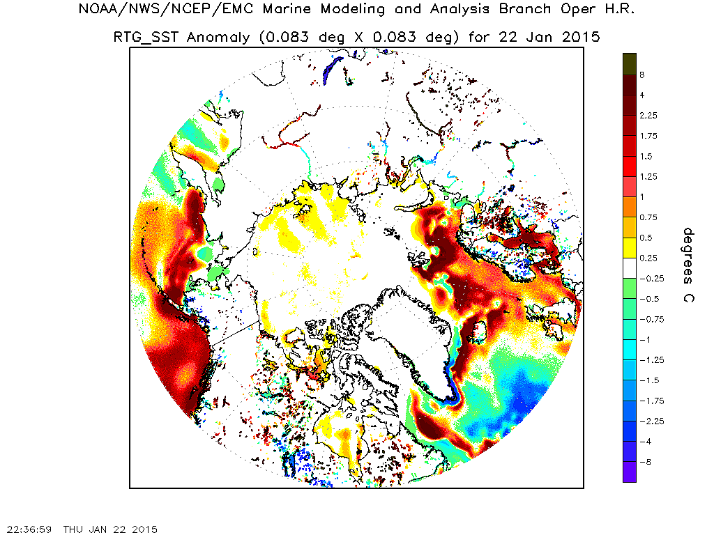 Dalla carta dell SST dello stesso NOAA ci risulta che la temperatura marina attuale di Capo Nord e di 4/6c,pertanto perfettamente nella media del periodo : a questo punto il NOAA dovrebbe spiegare da dove lo ha ricavato tutto quel rosso sangue!!!!!
