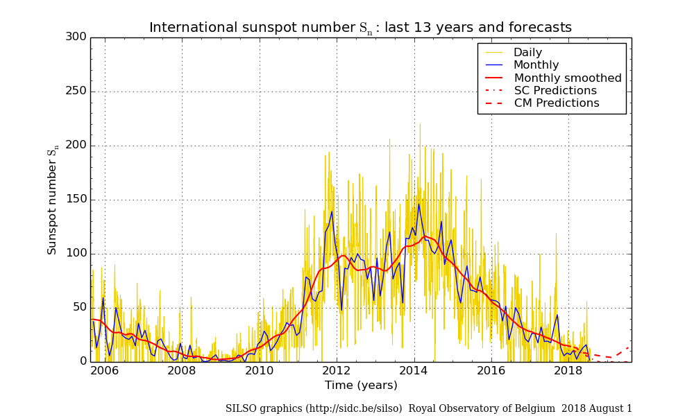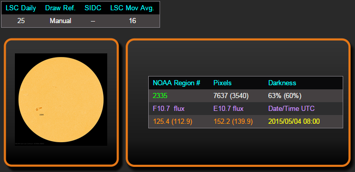 Il conteggio delle macchie solari del Layman’s (gestito da Geoff Sharp), nella giornata del 04 maggio alle ore 08:00 (ultimo aggiornamento disponibile) è risultato di 25 SN che porta la media mensile a 16 SN