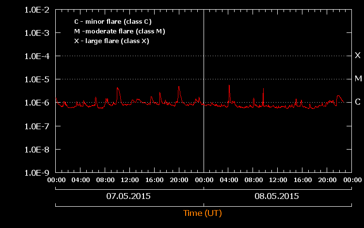 Il Campo Geomagnetico solare nella giornata di oggi 09 maggio 2015 è risultato in stato “QUIET” mentre gli X Ray sono risultati in stato “ACTIVE”