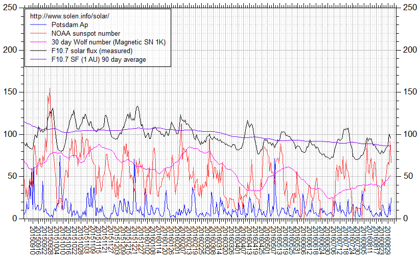 La velocità del Solar Flux 2,8 GHz alle ore 20,00: 154.5 in aumento rispetto ieri