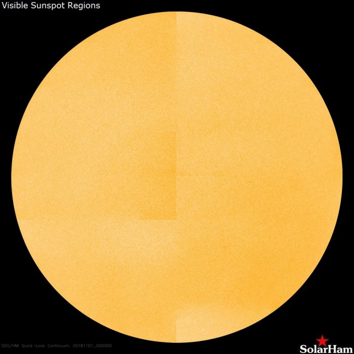 Il conteggio delle macchie solari giornaliere (conteggio SILSO/SIDC) del 1° novembre è risultato di 0.0