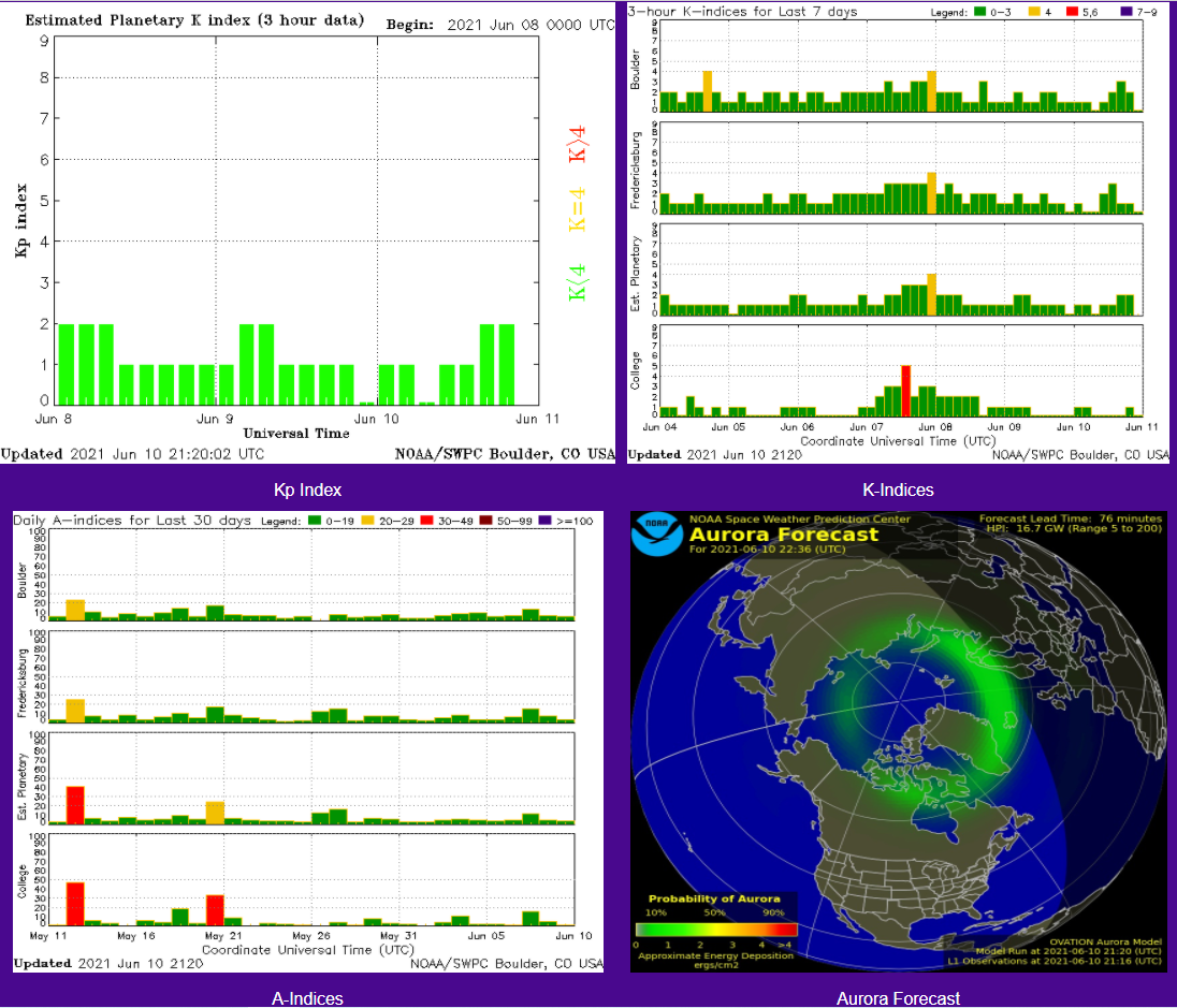 L’indice K degli ultimi 3 giorni e degli ultimi 7 giorni, Indice A e Aurora forecast
