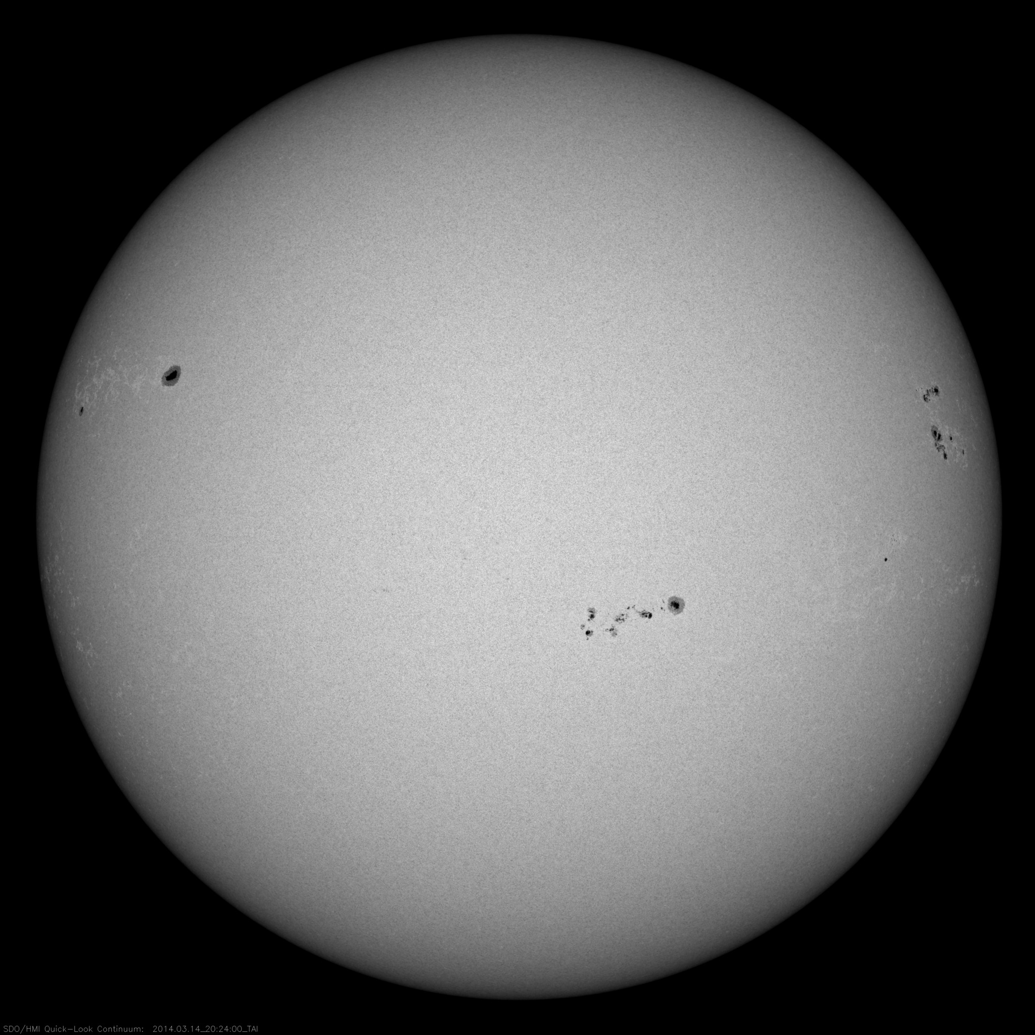 Alle ore 08.00 UTC il disco solare non presentava regioni attive sulla superficie visibile (risoluzione 2K dalle immagini SDO/HMI Continuum):