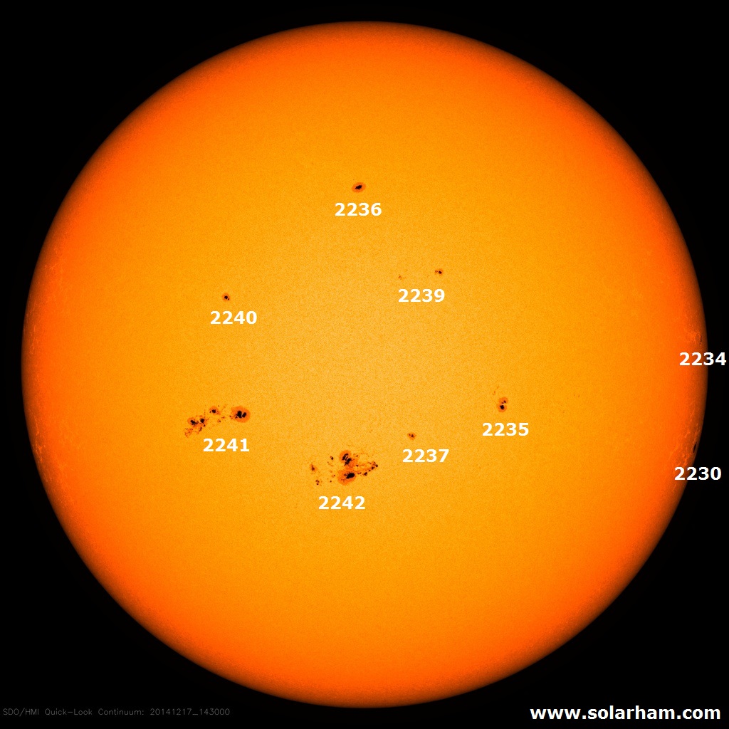 L’ente ufficiale per la raccolta dei dati delle macchie solari, il SILSO/SIDC, conta 143 macchie, in aumento rispetto al conteggio di ieri con 139 SSN.