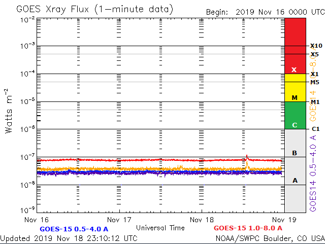 Ultime 24h: Attività solare che nella giornata del 18 novembre è rimasta a livelli molto bassi. La giornata è risultata spotless per il 17° giorno consecutivo.