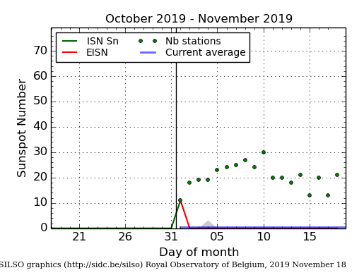 Totale spotless days (SILSO/SIDC) da febbraio 2014 (max SC 24) al 18 novembre 2019: 622 (ufficiosi) così distribuiti/anno – 2014 = 1 – 2015 = 0 – 2016 = 35 – 2017 = 110 – 2018 = 231 – 2019 =