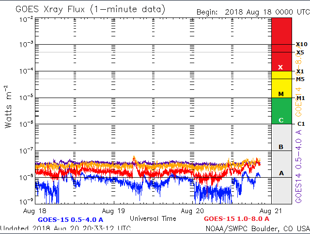 Previsioni per le prossime 72 ore: L’attività solare è destinata a restare molto bassa per i prossimi 3 giorni (21–23 agosto).