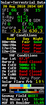 La velocità del flusso solare (2,8 GHz) alle ore 20,00 del 20 agosto è risultato a 68.8 – (66.8)