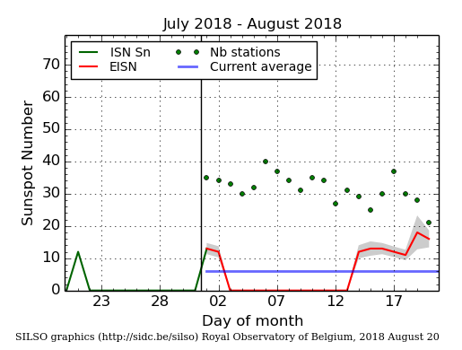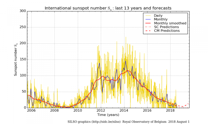 Il 2018 ha un conteggio parziale di 138 giorni spotless 60% (ufficiosi) conteggio SILSO/SIDC, Belgio.
