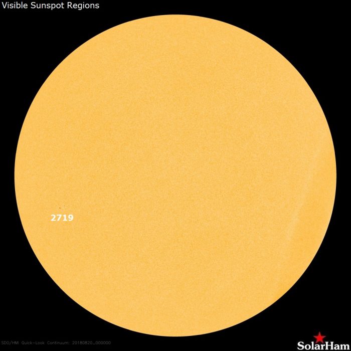 Alle ore 08.00 UTC il disco solare presentava una regione attiva sulla superficie visibile (in risoluzione 2K dalle immagini SDO/HMI Continuum):