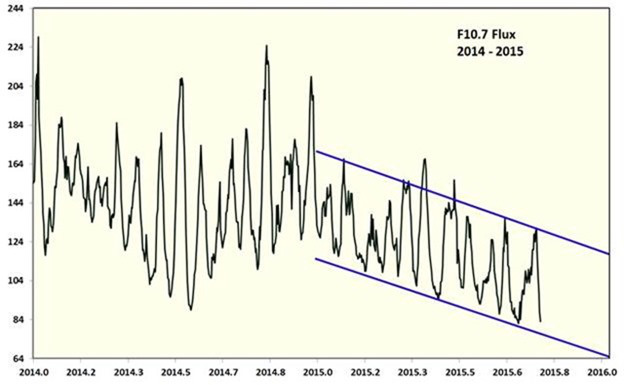 Alle ore 18.00 UTC del 27.01.2018 il SFU ha toccato 64.2 – record al ribasso eguagliato per il ciclo di transizione 23/24 del 16.07.2008 e record di tutti i cicli da quando si rileva questo parametro solare.