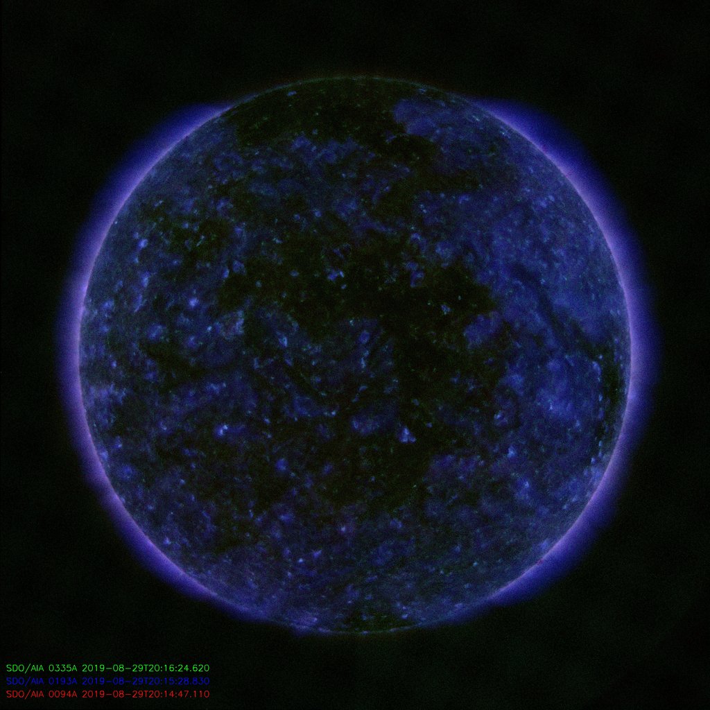 Alle ore 08.00 UTC il disco solare visibile non presentava alcuna regione attiva (in risoluzione 2K) dalle immagini inviate dalla sonda SDO/HMI Continuum: