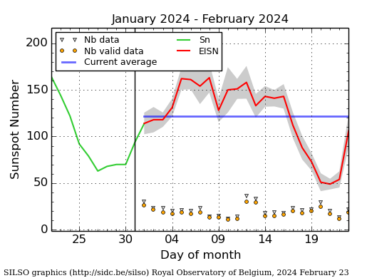 Conteggio SILSO/SIDC mese di Gennaio 2024