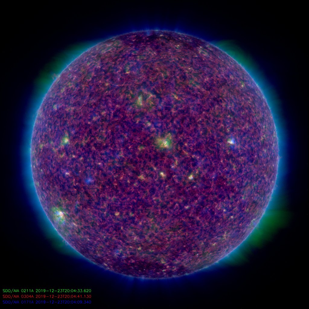 Alle ore 08.00 UTC il disco solare visibile non presentava alcuna regione attiva (in risoluzione 2K) dalle immagini inviate dalla sonda SDO/HMI Continuum: