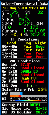 La velocità del flusso solare (2,8 GHz) alle ore 20,00 del 26 maggio è risultato a 72.9 – (75.7)