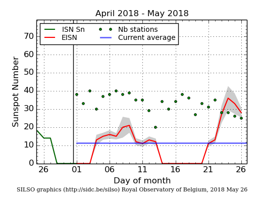 Totale giorni spotless (Sidc) da febbraio 2014 (max ciclo 24) al 26 maggio 2018: 232 (ufficiosi)