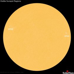 Alle ore 08.00 UTC, il disco solare presentava 2 macchie solari sulla superficie visibile (in risoluzione 2K dalle immagini SDO/HMI Continuum):