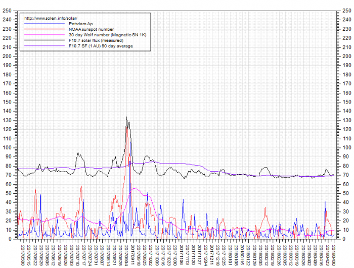 La media mensile del flusso solare ad oggi risulta di 69.9 – (69.7)