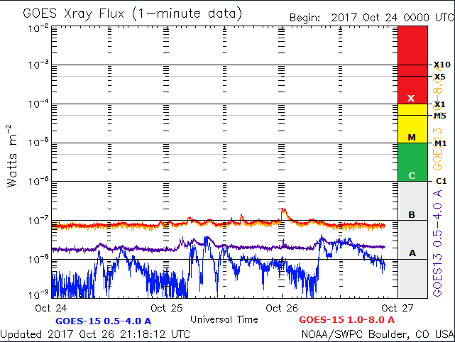 Previsioni per le prossime 72 ore: L’attività solare è destinata a restare molto bassa nei prossimi tre giorni (27-29 ottobre).