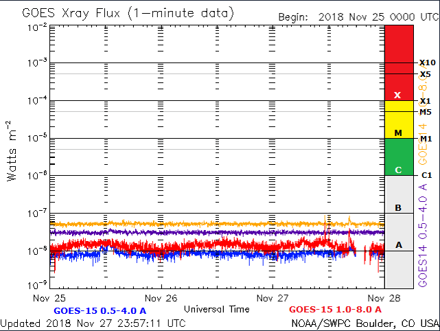 Previsioni per le prossime 72 ore: L’attività solare è destinata a restare molto bassa per i prossimi 3 giorni (28-30 novembre).
