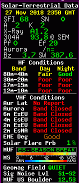 Alle ore 18.00 UTC del 27.01.2018 il SFU ha toccato 64.2 – record al ribasso eguagliato per il ciclo di transizione 23/24 del 16.07.2008 e record di tutti i cicli da quando si rileva questo parametro solare.