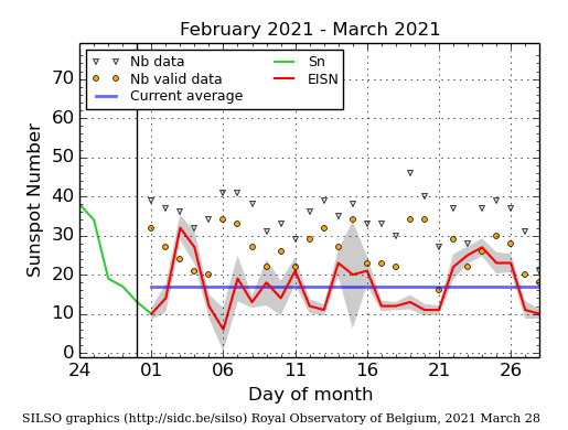 Il 2021 ha un conteggio parziale di 28 giorni su 87 (32%) spotless days (dati ufficiosi) conteggio SILSO/SIDC, Belgio.