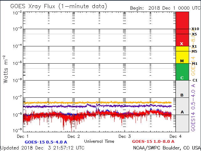 Previsioni per le prossime 72 ore: L’attività solare è destinata a restare molto bassa per i prossimi 3 giorni (04-06 dicembre).