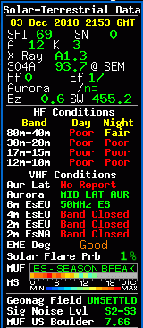 La velocità del flusso solare (2,8 GHz) alle ore 20,00 del 3 dicembre è risultato di 68.4 – (69.0)