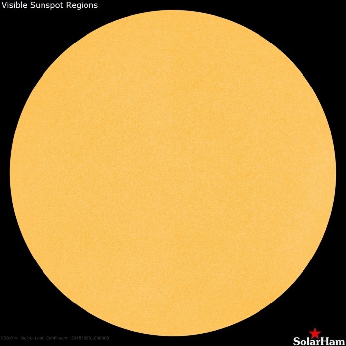 Alle ore 08.00 UTC il disco solare non presentava regioni attive sulla superficie visibile (risoluzione 2K dalle immagini SDO/HMI Continuum):