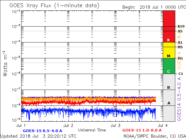 Previsioni per le prossime 72 ore: L’attività solare è destinata a restare molto bassa nei prossimi 3 giorni (4-6 luglio).