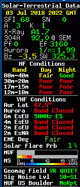 La velocità del flusso solare (2,8 GHz) alle ore 20,00 del 3 luglio è risultato a 68.2 – (66.6)