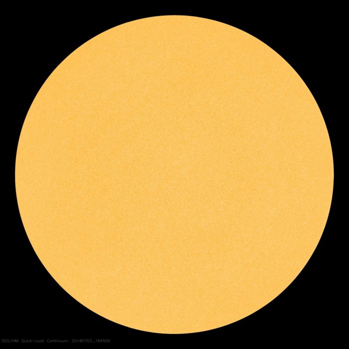 Alle ore 08.00 UTC, il disco solare non presentava macchie solari sulla superficie visibile (in risoluzione 2K dalle immagini SDO/HMI Continuum):