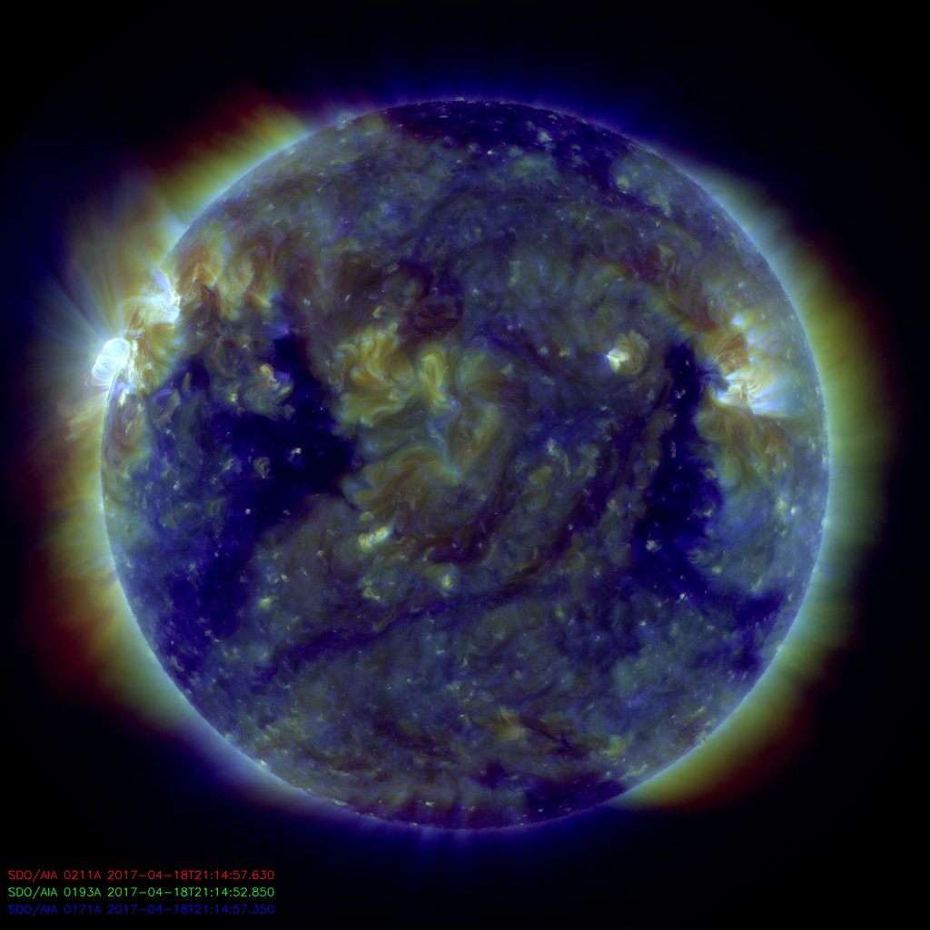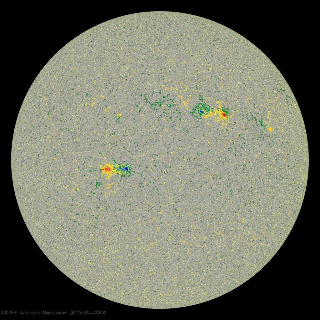 Alle ore 08.00 UTC, il disco solare visibile presentava due regioni attive (in risoluzione 2K dalle immagini SDO/HMI Continuum):