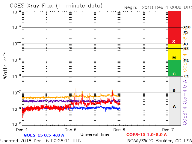 Previsioni per le prossime 72 ore: L’attività solare è destinata a restare molto bassa per i prossimi 3 giorni (06-08 dicembre).