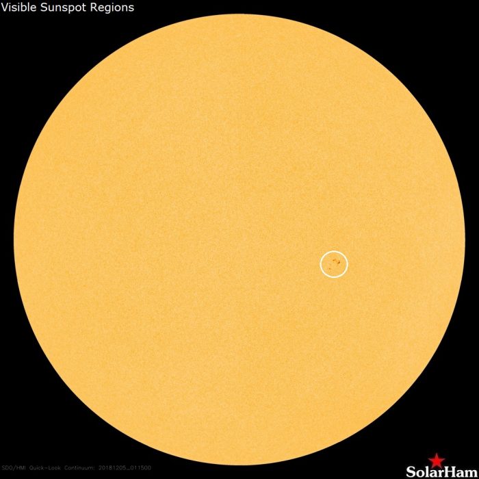 Ultime 24h: Attività solare che nella giornata del 5 dicembre è rimasta a livelli molto bassi. Una nuova regione attiva è affiorata dalla fotosfera solare.