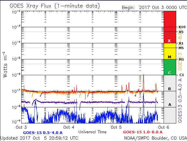Previsioni per le prossime 72 ore: L’attività solare è destinata a restare molto bassa nei prossimi tre giorni (6-8 ottobre) con possibili brillamenti di classe C.