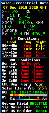 La velocità del flusso solare (2,8 GHz) alle ore 20,00 del 7 dicembre è risultato di 70.4 – (69.7)