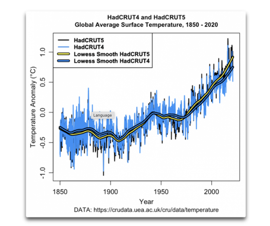 Allora perché c’è così poco riscaldamento attuale registrato dai satelliti e dai palloni meteorologici nella troposfera, ma per i principali set di dati di superficie è sempre più alto, come al solito? Niente di più che al Met Office del Regno Unito, dove la scomoda pausa 1998-2012 è stata finalmente rimossa nel 2020 con un aumento della temperatura del 14%. Ecco il cambiamento da HadCRUT4 a HadCRUT5.