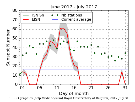 Il conteggio definitivo del mese di luglio 2017 (SILSO).