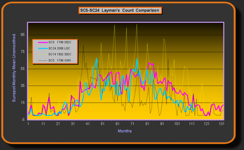 Il sistema adottato contemporaneo di conteggio delle macchie solari è completamente fuorviante e lontano da ogni realtà con i conteggi del passato, questo per gli ovvi motivi di miglioramento nella strumentazione di rilevamento sempre più sofisticata, e con una migliore risoluzione utilizzata rispetto al passato. Ritengo quindi i conteggi attuali non più paragonabili al passato, di conseguenza, non più raffrontabili con nessun ciclo dei secoli passati.