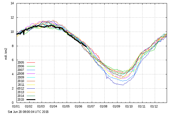 Di seguito la situazione dei ghiacci artici, a partire dal 2005, riferita alla giornata di oggi 20 giugno. Dati rilevati […]